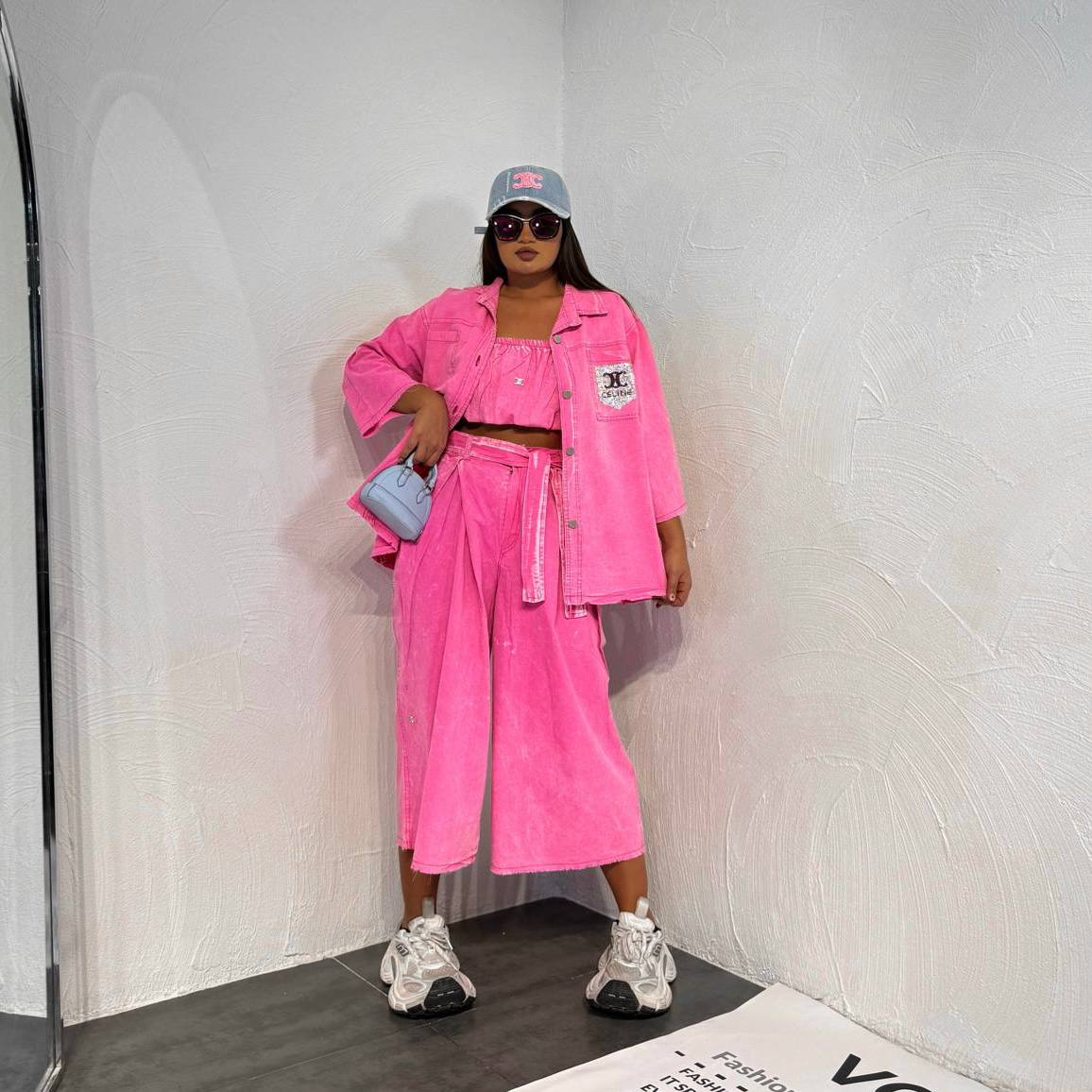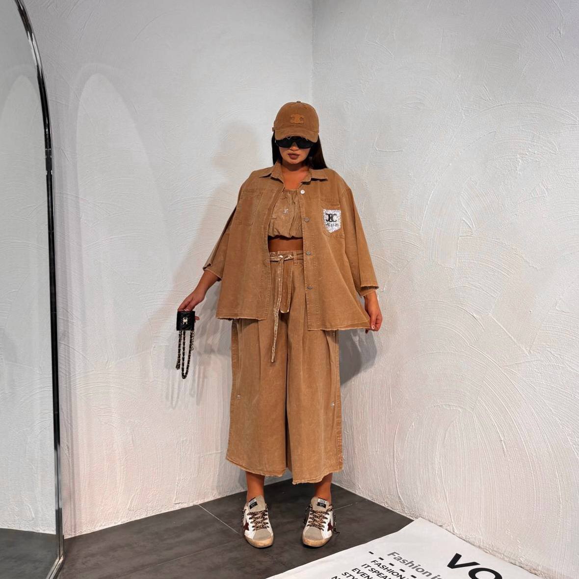 پارچه کتان سنگشور: ست کراپ شومیز شلوار